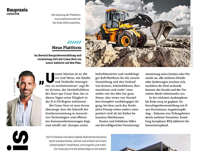 Im Bereich Baugerätevermittlung und -vermietung tritt mit Crane Now ein neuer Anbieter auf den Plan.